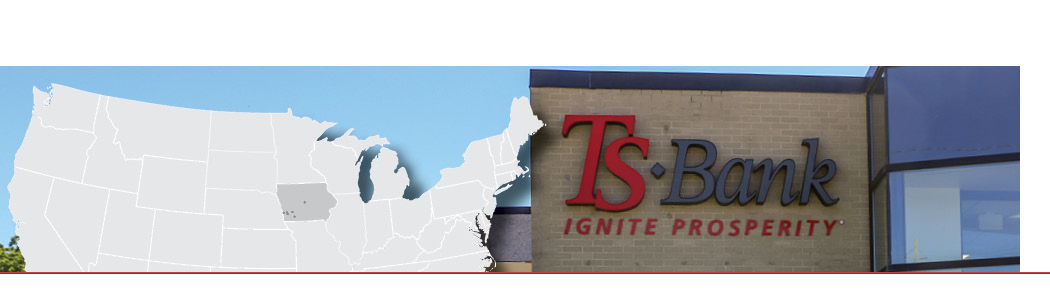 Branch locations include Treynor, Macedonia, Atlantic, Corning, Ames and two branches in Council Bluffs, Iowa. Clients can also access virtual support to connect face-to-face with service specialists online. For more information visit tsbank.com. TS Bank | Member FDIC.